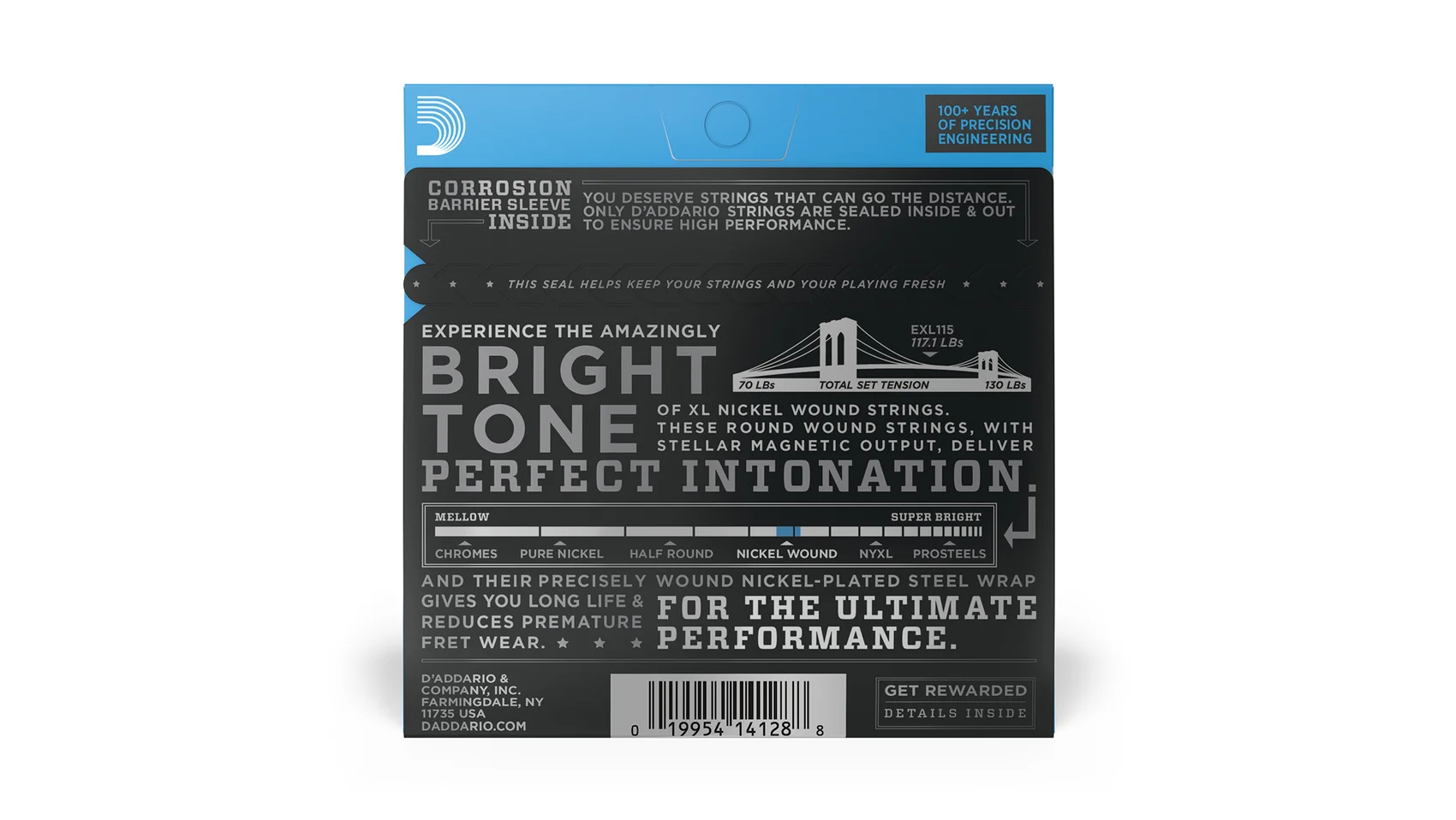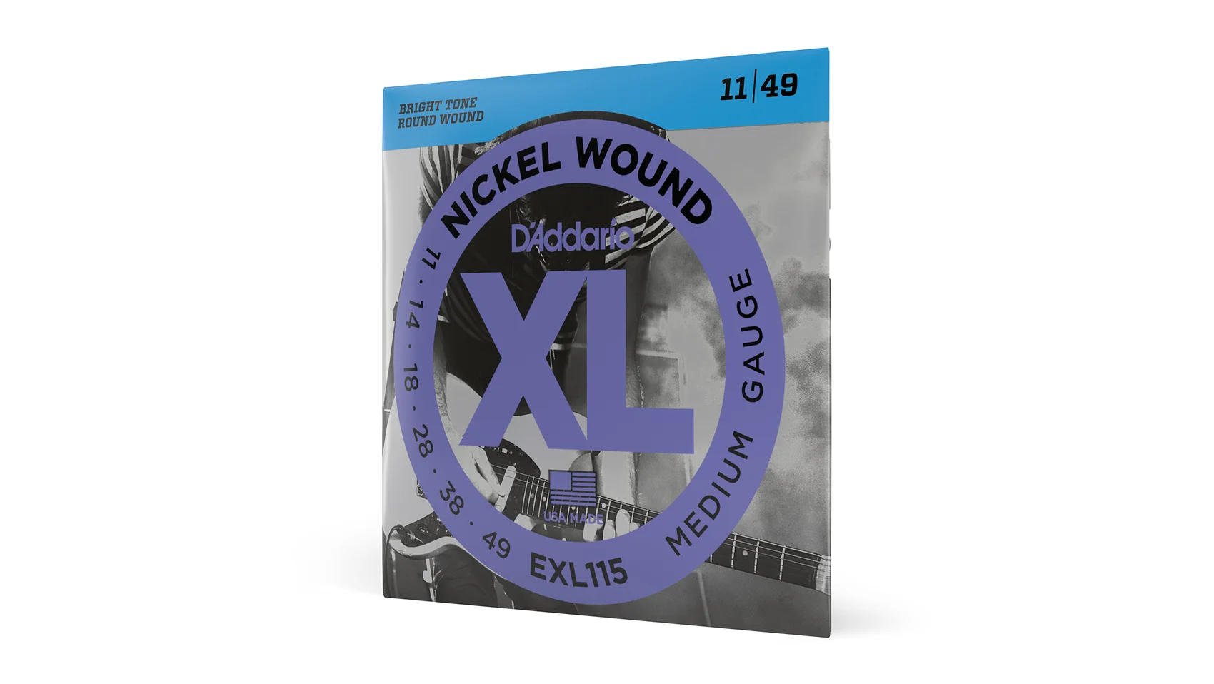 XL Nickel Wound electric guitar strings are the standard against which all other strings are measured. D'Addario's best-belling electric set, XL Nickel has been revered by players everywhere since 1974. Made with a high carbon steel core and nickel-plated steel wrap wire, XL Nickel strings have a bright, versatile tone, ideal for a wide variety of musical styles. 11-49 Medium gauge sets provide increased volume, with slightly more tension and resistance.