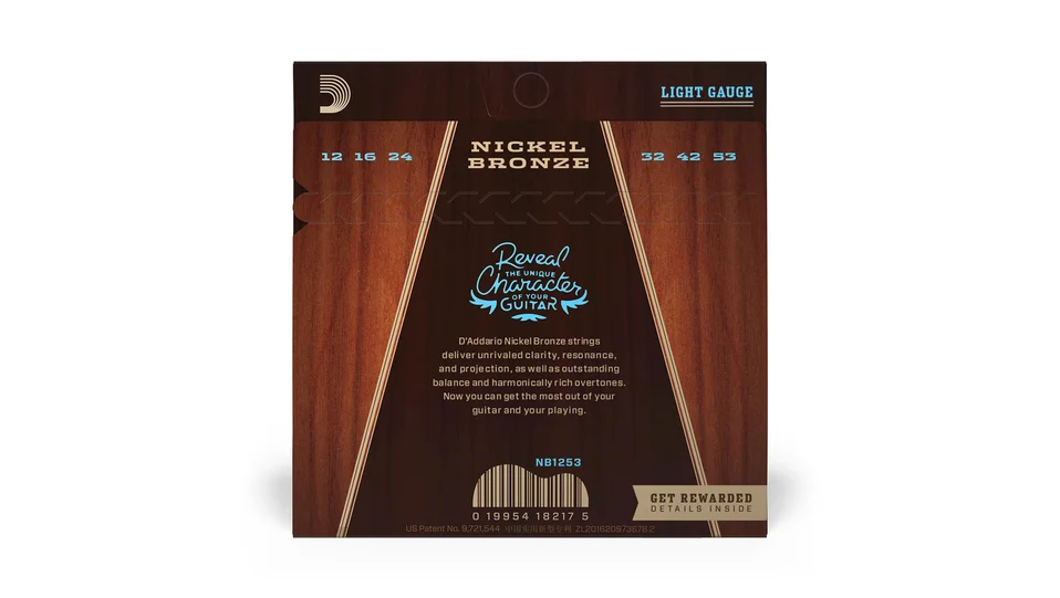 Nickel Bronze acoustic strings are made to bring out the unique tonal characteristics of your guitar, allowing its natural voice to shine through. This distinctive string alloy creates a clear, focused sound, magnifying the sonic properties of the guitar’s wood. Made with a NY Steel core and nickel-plated phosphor bronze wrap wire, Nickel Bronze strings get you the most out of your guitar and your playing. 12-53 Light gauge strings are our most popular acoustic gauge, providing a nice balance of playability and tone.