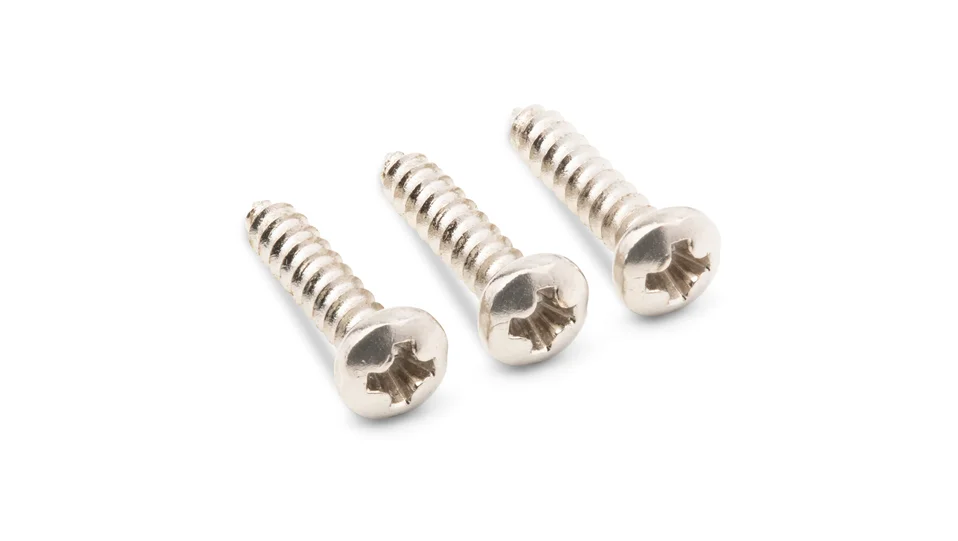 These screws are intended to replace the screws that secure the truss rod cover on Taylor guitars. This pack includes three replacement screws in chrome. How to Choose the Correct Size Truss Rod Cover: Three-Hole Covers - All three-hole covers are the same size. Simply choose the material you’d like. We offer black plastic, rosewood and ebony. Two-Hole Covers - There are two sizes of two-hole covers: standard and short. You can determine the size of yours by serial number or by measuring. By Serial Number We used the shorter two-hole cover until September of 2003. We switched to a slightly longer (standard) truss rod cover so we wouldn’t have to cut the screw by the nut shorter, which was done to prevent it from hitting the truss rod below it. The transition date was September 17, 2003. Guitars with serial number 20030917xxx (2003 = year and 0917 = month and day) or later will take the longer covers. Guitars built before that date will take the short cover. By Measuring - If measuring, the distance between the screw holes is: Standard: 1.8” (1-51/64”, 4.57 cm) Short: 1.65” (1-21/32”, 4.19 cm) For the screws listing: Please note: Truss rod cover screws are sold in a pack of three to cover both two- and three-hole covers. We do not offer them in a pack of two.